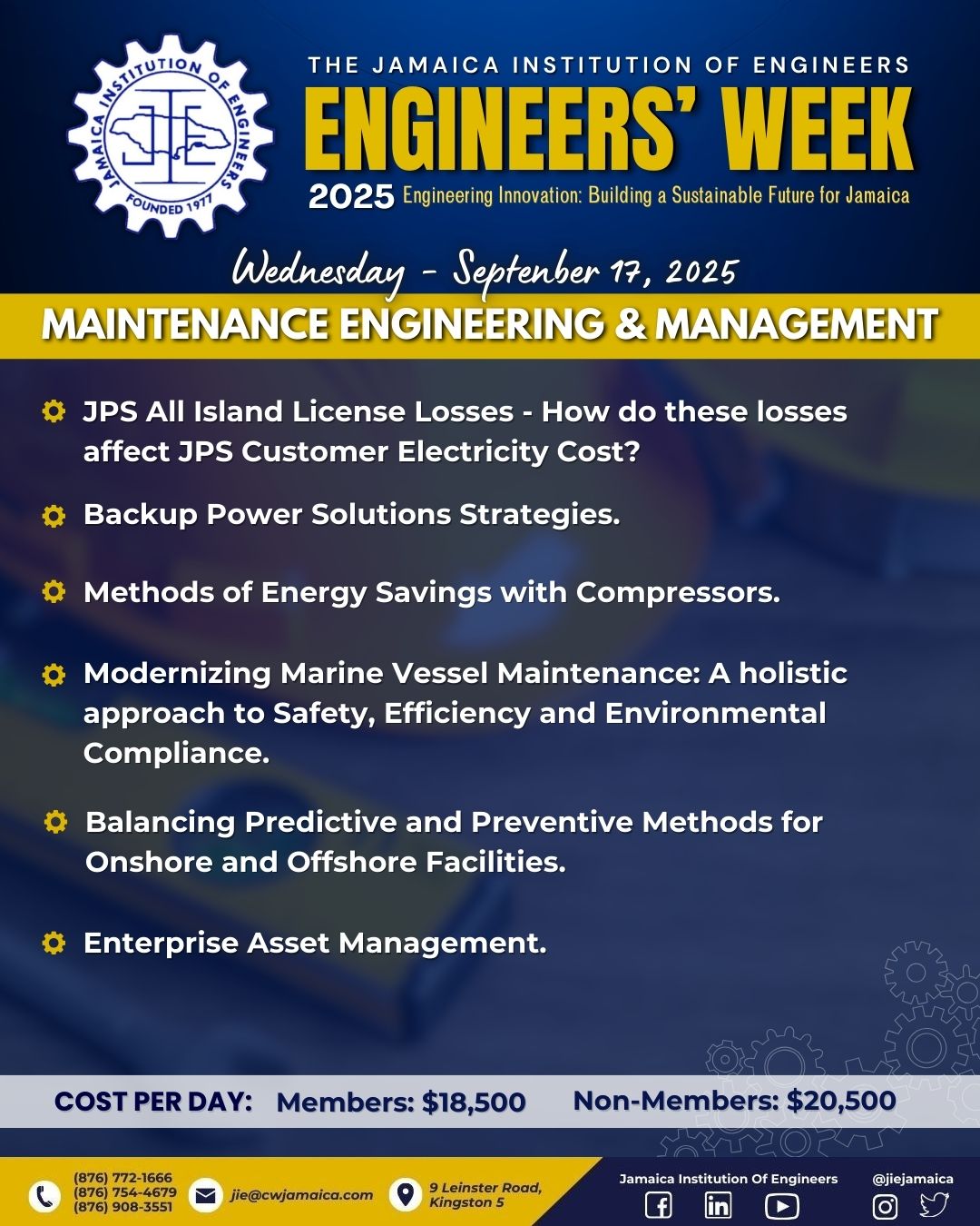 Date:Wednesday, 17th September, 2025 Time:9:00 a.m. – 5:00 p.m. Venue:Summit Kingston Topic:Maintenance Engineering & Management